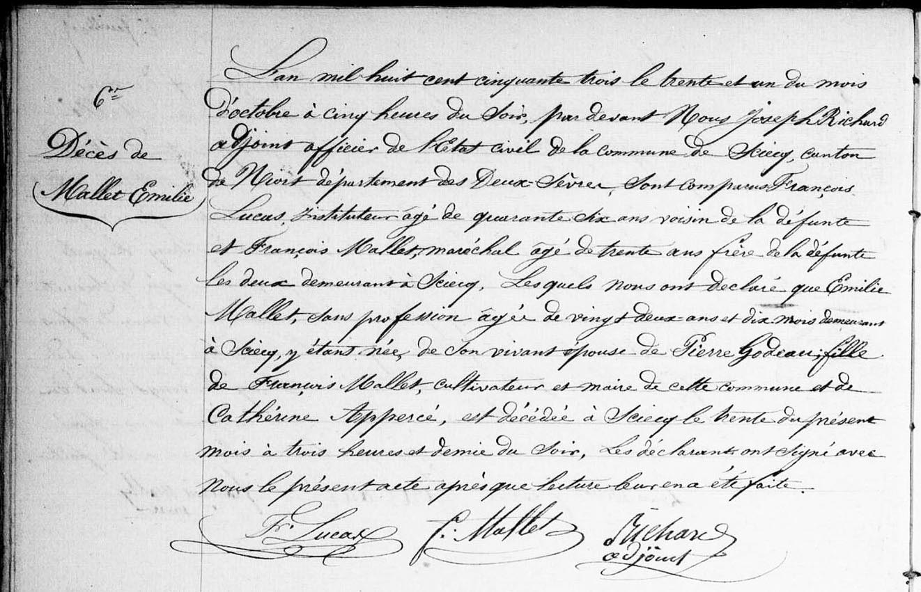 Mariage : 25 janvier 1853 à Sciecq 79000