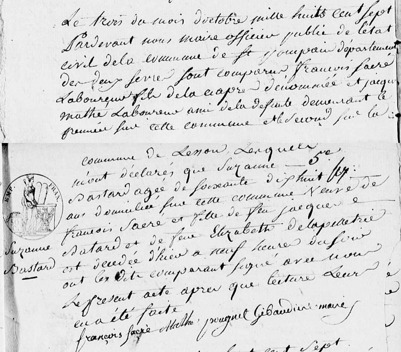 Inhumation : 3 octobre 1807 à Saint-Pompain 79160