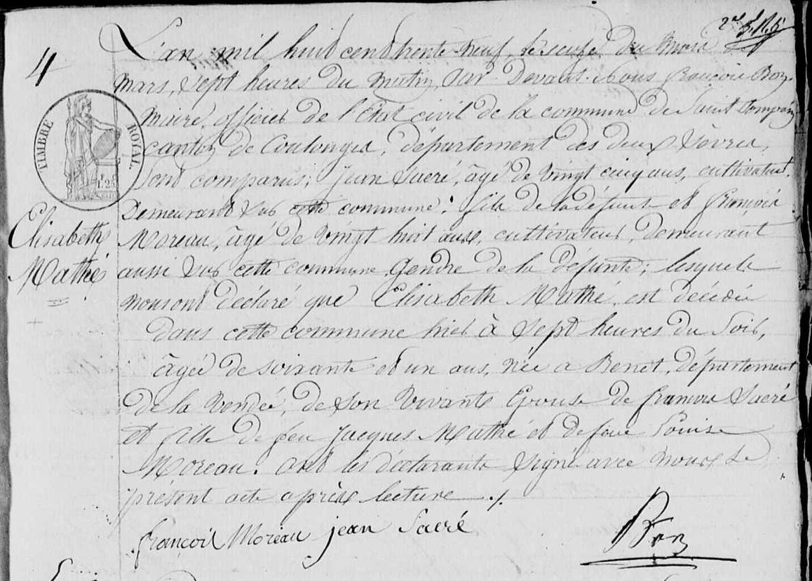 Mariage : 11 juillet 1796 à Benet 85490
