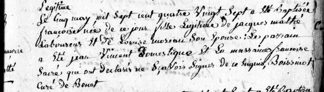 parents de la mariée presents demeurant La méterie de la ville de Benet