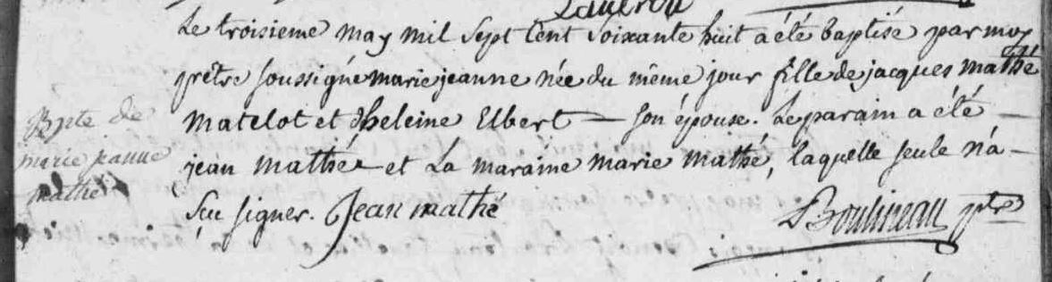 Enfant : MATHÉ Marie Jeanne ( 1768 - 1819 )