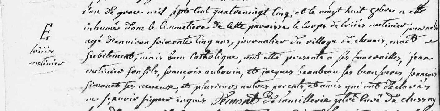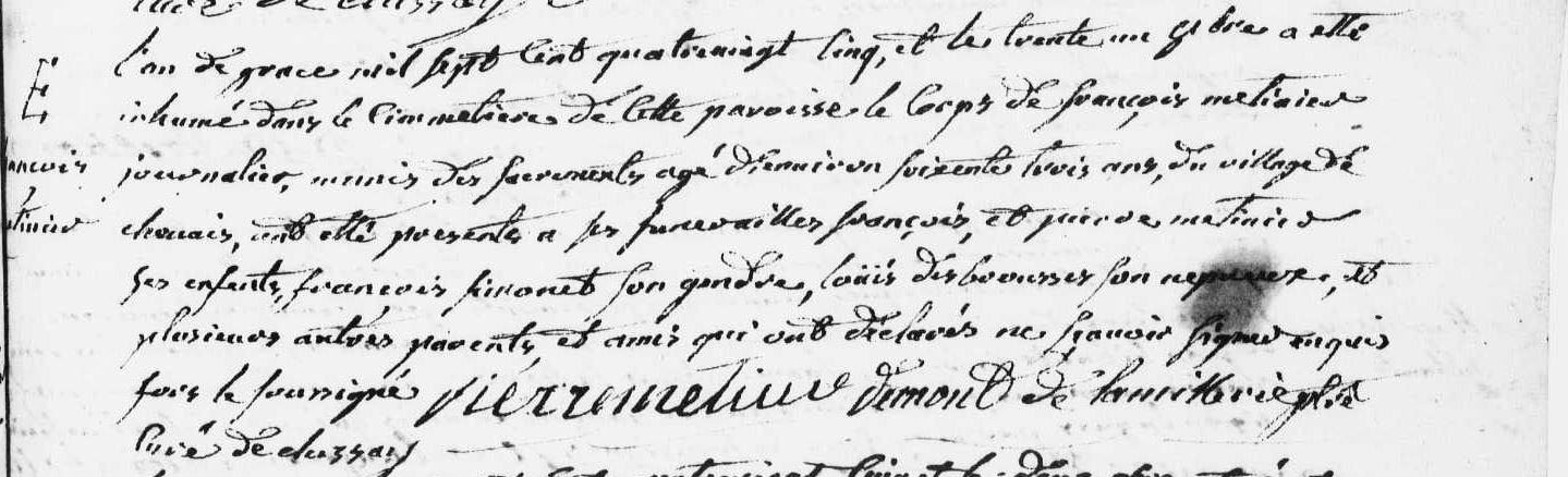 Naissance : 31 mars 1720 à Clussais-la-Pommeraie 79190 Inhumation : 28 septembre 1785 à Clussais-la-Pommeraie 79190 Chevais