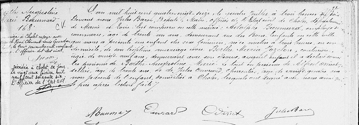 Mère : BAUMARD Augustine ( 1841 - ? )