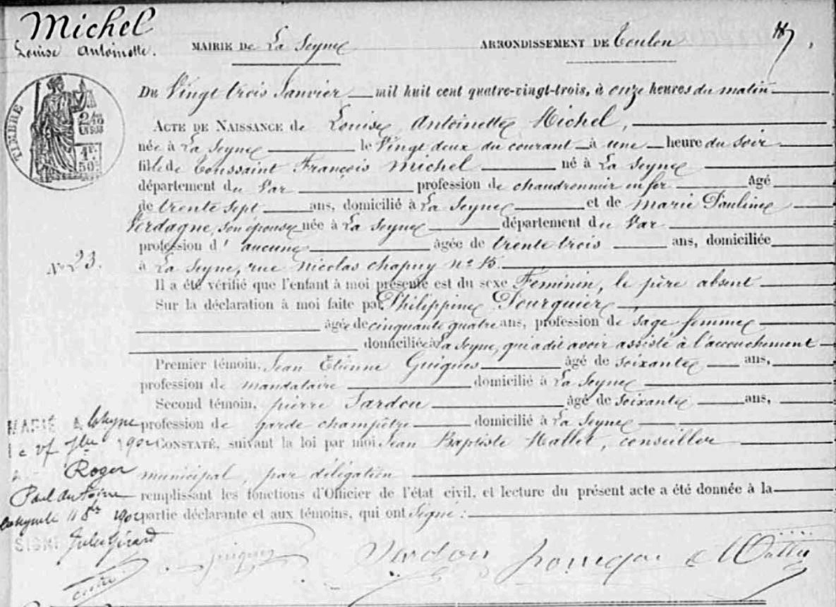 Enfant : MICHEL Louise Antoinette ( 1883 - ? )