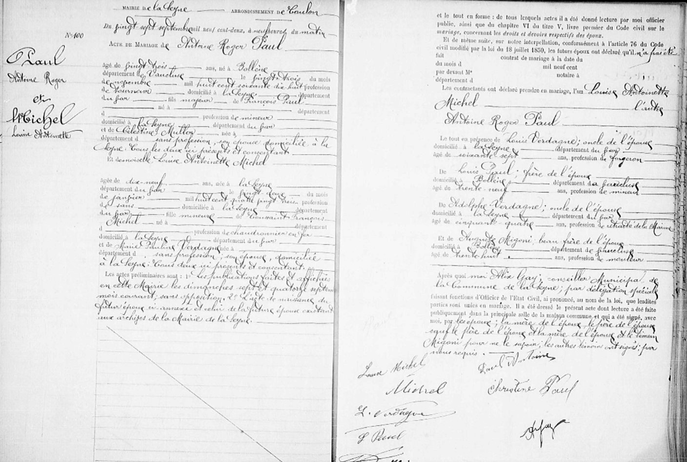 Mariage : 27 septembre 1902 à La Seyne-sur-Mer 83500