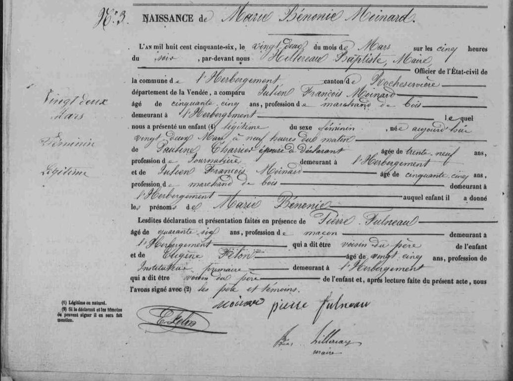 Naissance : 14 octobre 1855 à L'Herbergement 85260