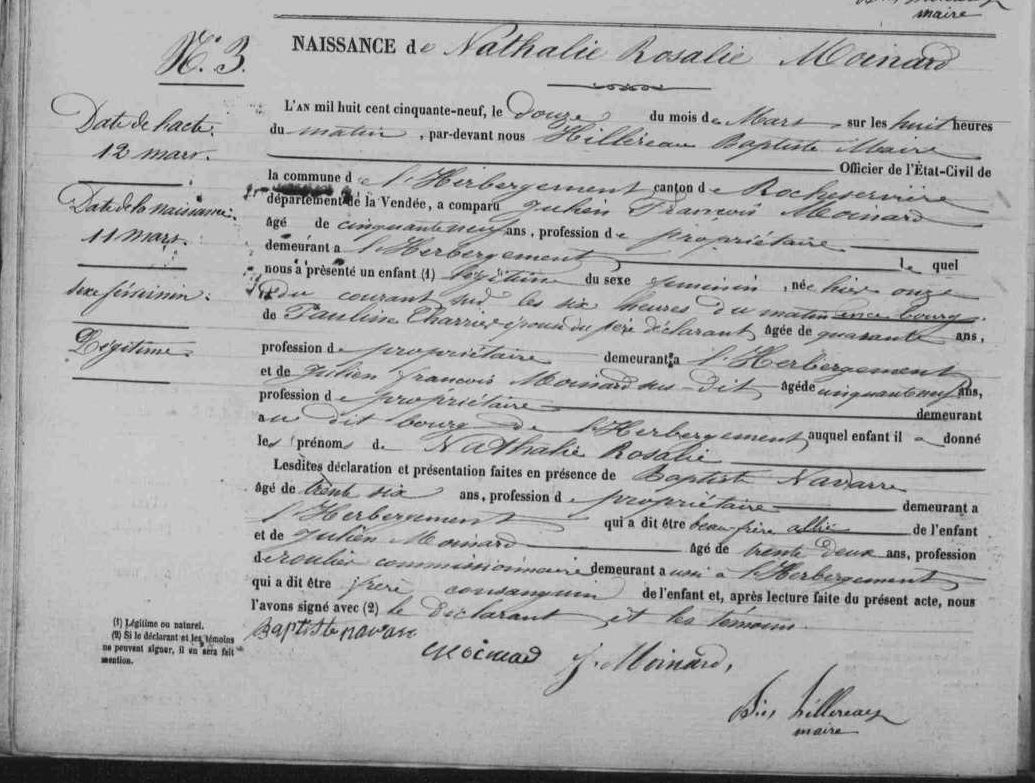 Naissance : 1805 à Vieillevigne 44116 Décès : 4 novembre 1872 à Saint-André-Treize-Voies 85260 les Aphaies
