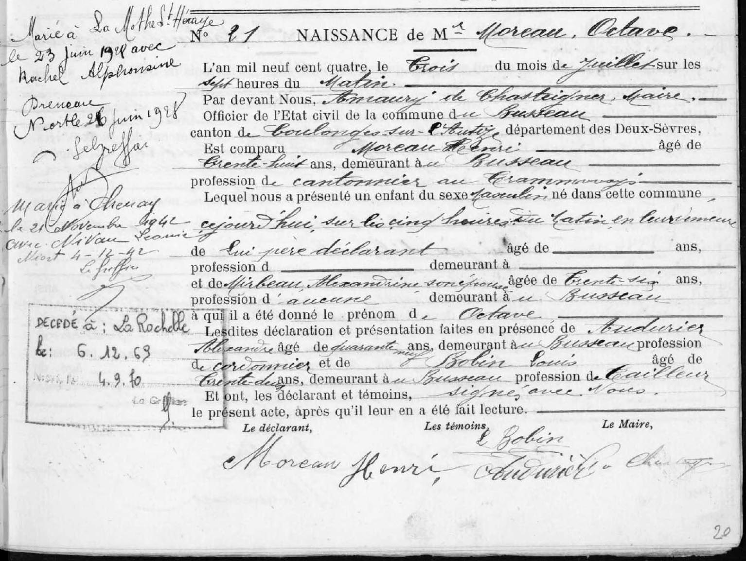 Mère : MIRBEAU Alexandrine ( 1868 - 1945 )