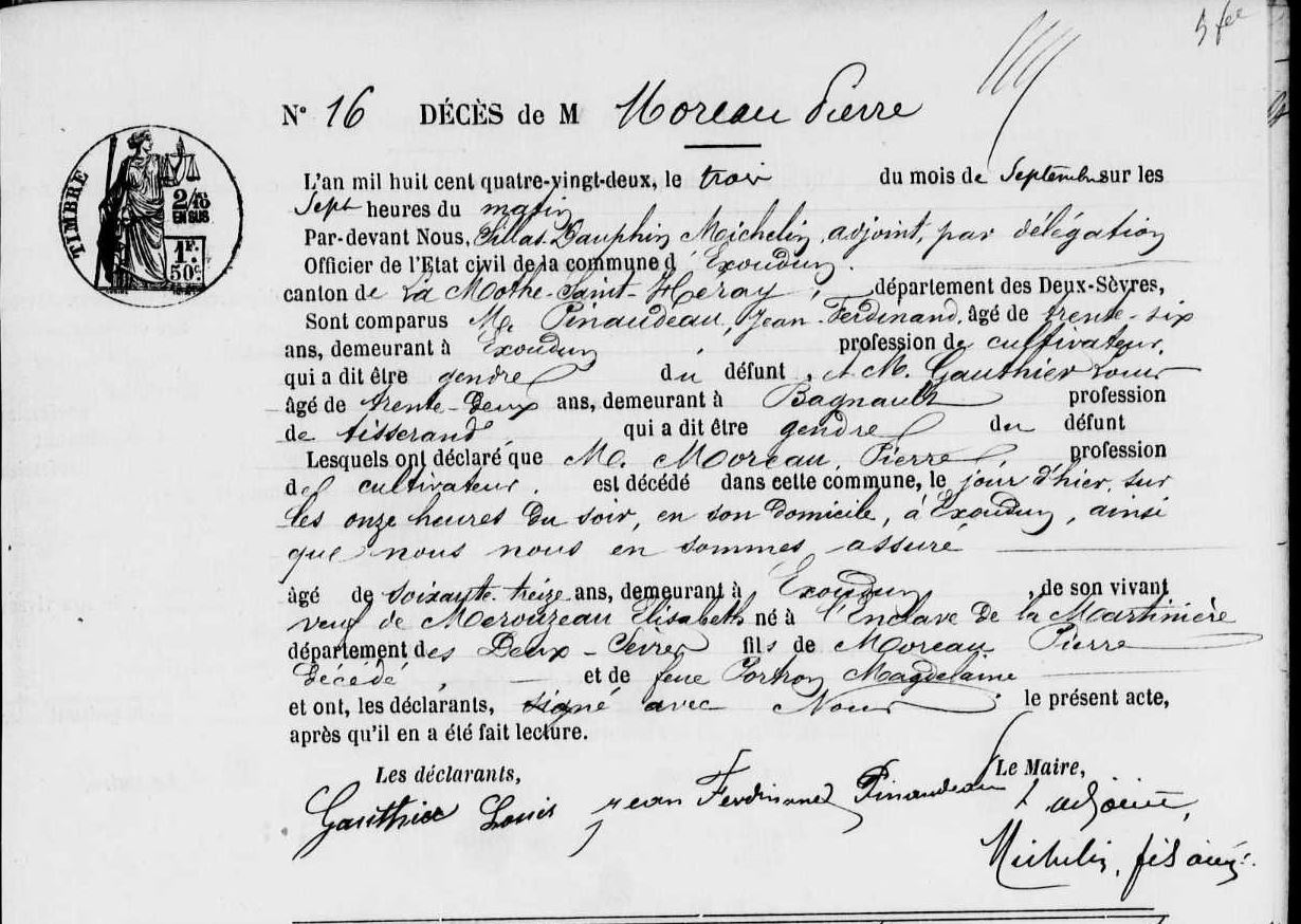 Père : MOREAU Pierre ( 1776 - 1841 )