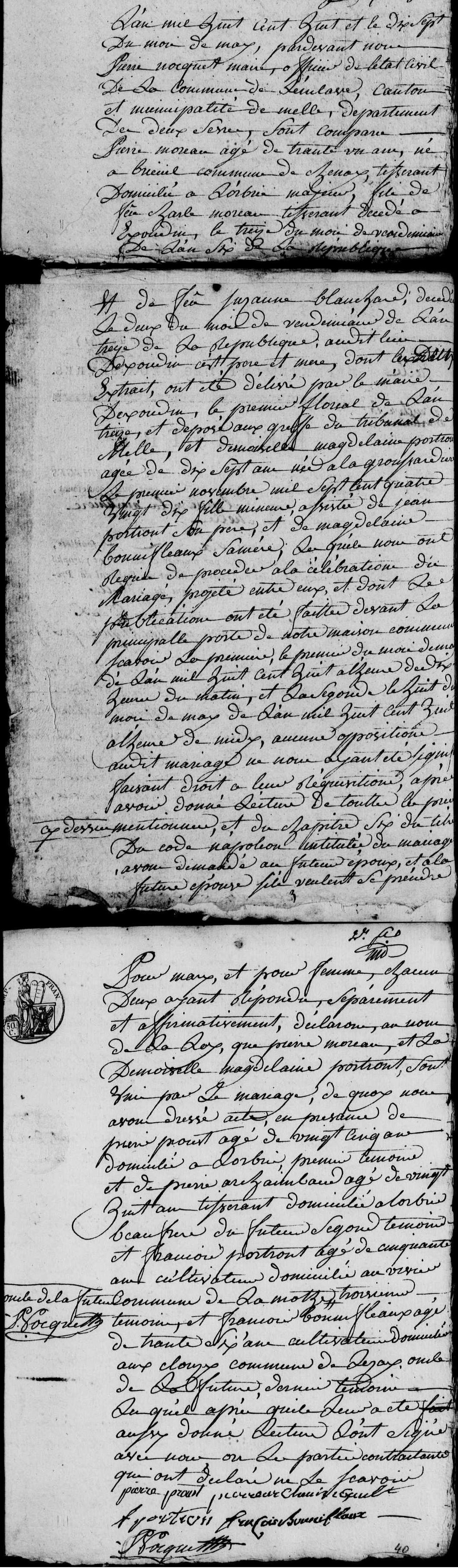 Union : PORTRON Magdelaine ou Marie-Magdelaine ( 1790 - 1874 )