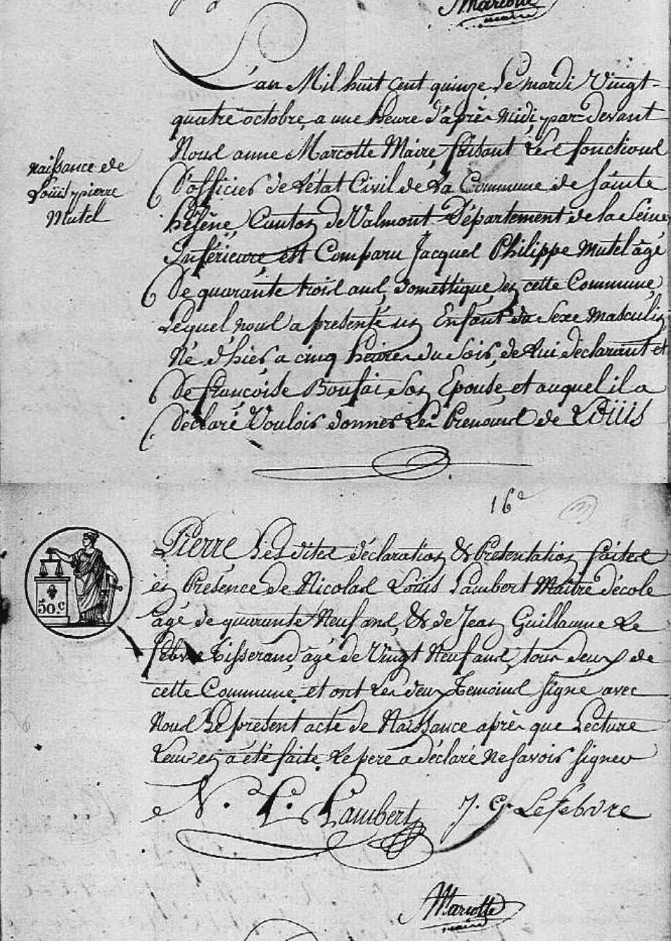 Père : MUTEL Samson Nicolas ( 1744 - 1814 )