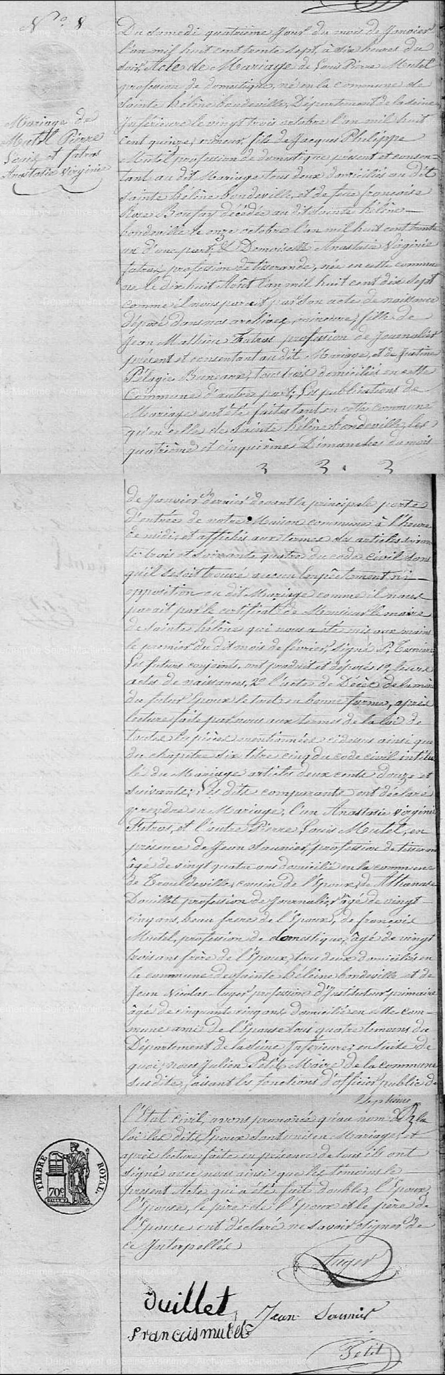 Mariage : 28 novembre 1626 à Vergetot 76280