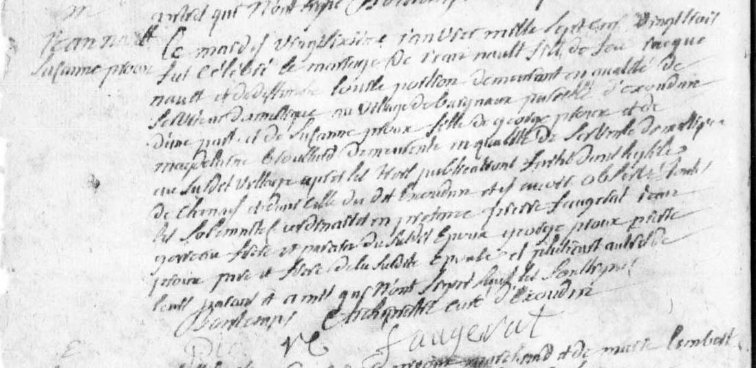 Mariage : 26 janvier 1723 à Exoudun 79800