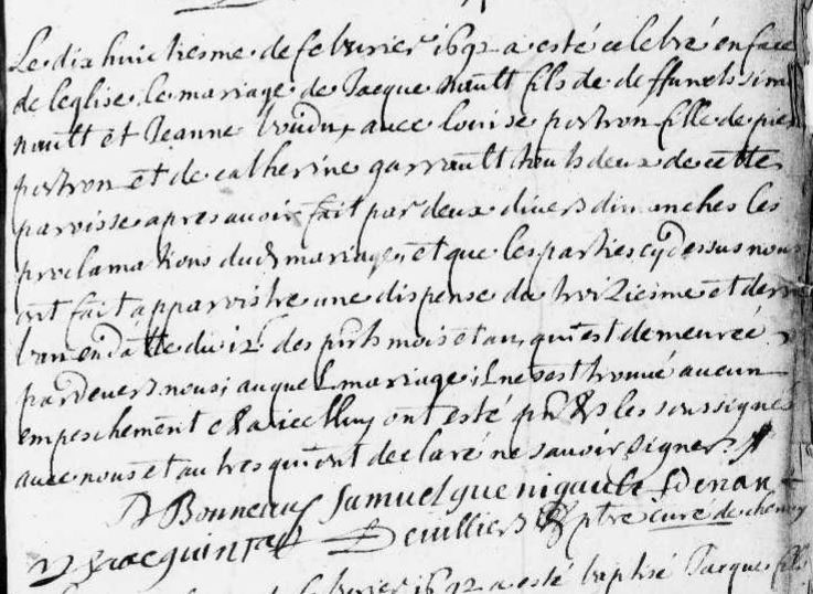 Mariage : 18 février 1692 à Chenay 79120