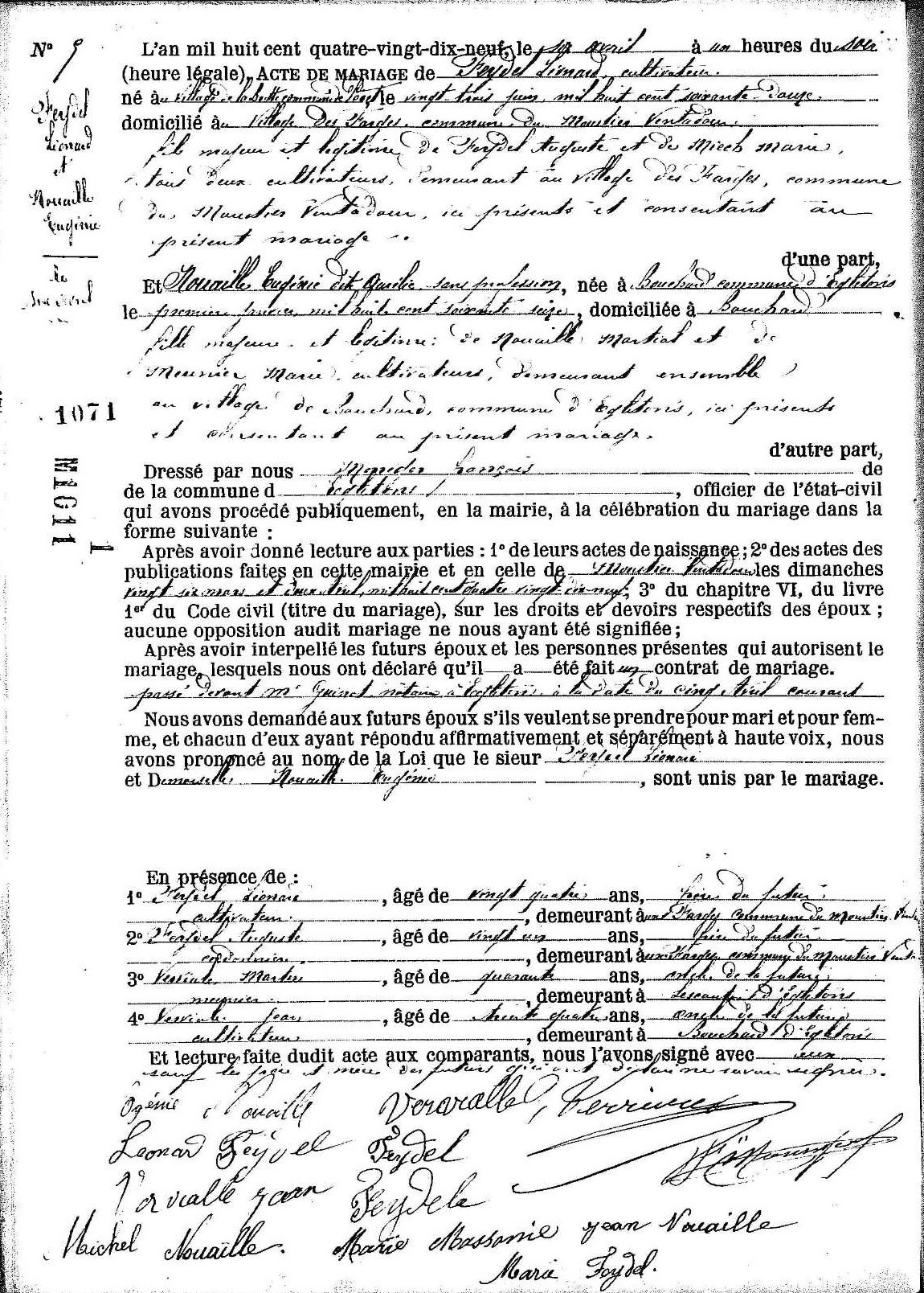 Mariage : 12 février 1870 à Saint-Yrieix-le-Déjalat 19300
