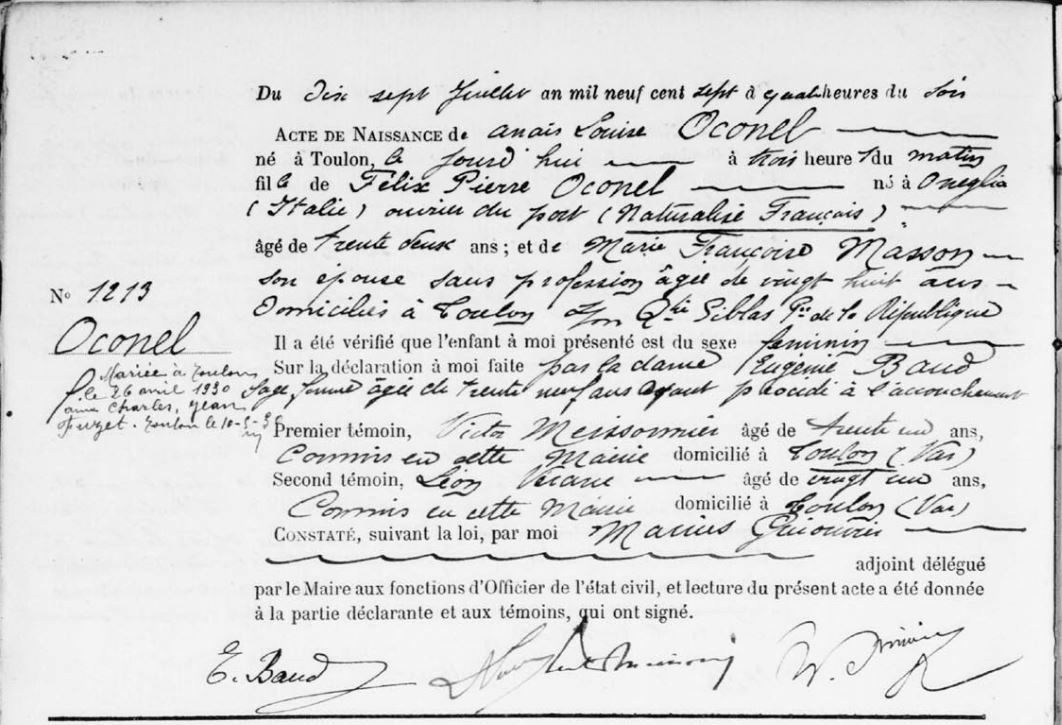 Père : OCONEL Félix Pierre ( 1875 - 1909 )