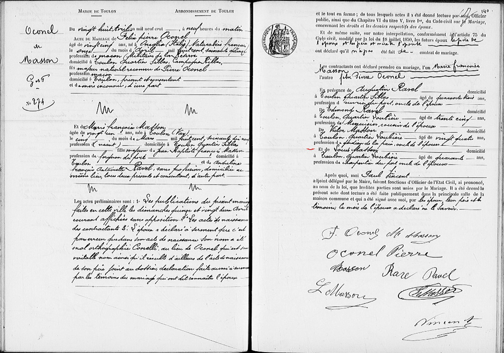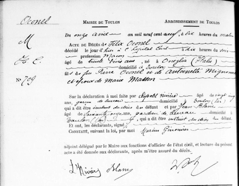 Père : OCONEL Pierre ( 1843 - 1906 )