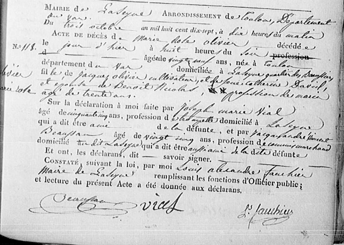 Enfant : OLIVIER Catherine Rose (Marie) ( 1788 - 1817 )