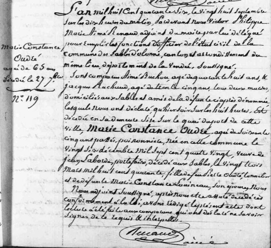 Naissance : 1715 Décès : 17 octobre 1793 à Les Sables-d'Olonne 85180