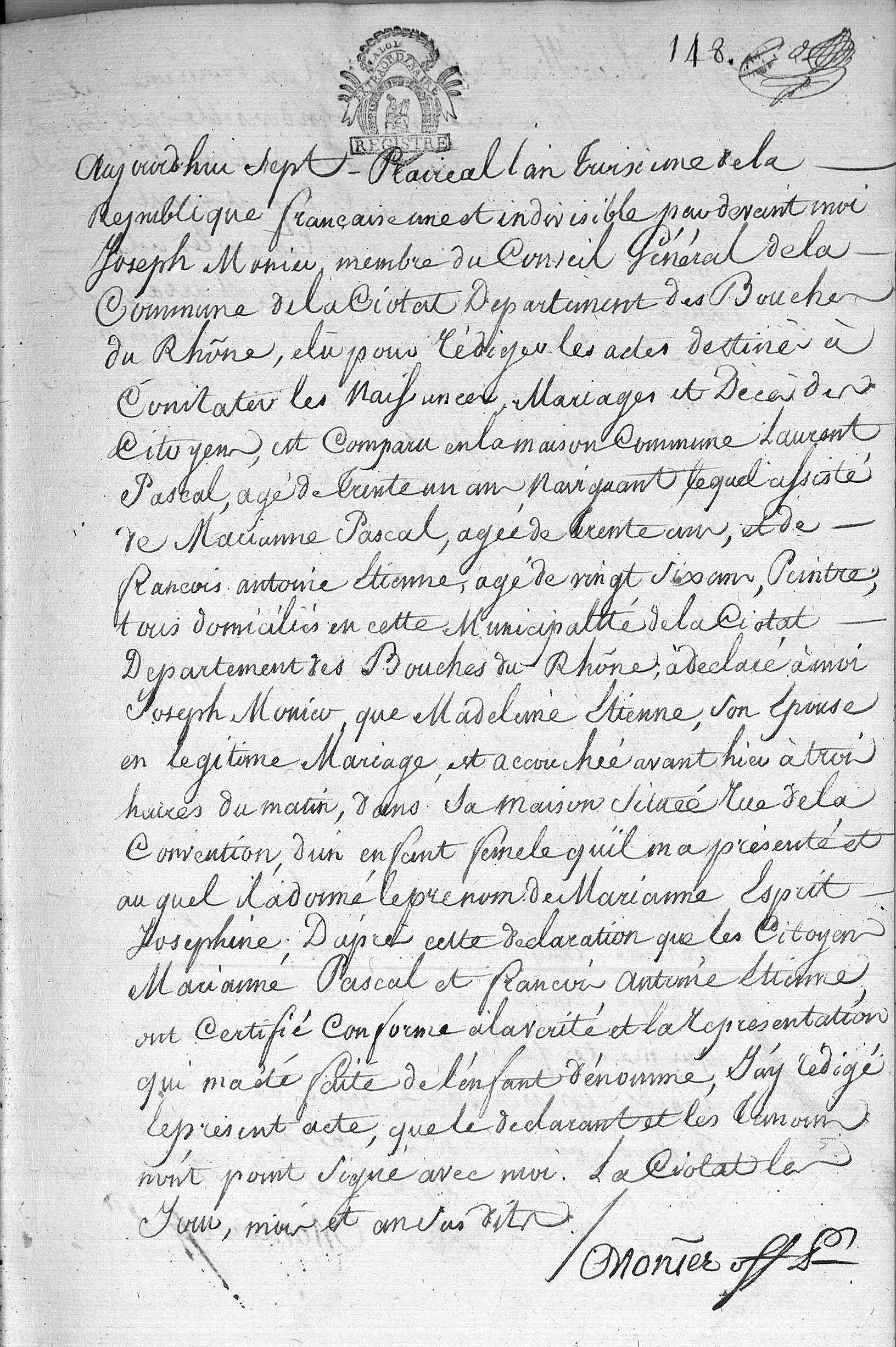 Enfant : PASCAL Marianne Esprit Joséphine ( 1795 - 1835 )