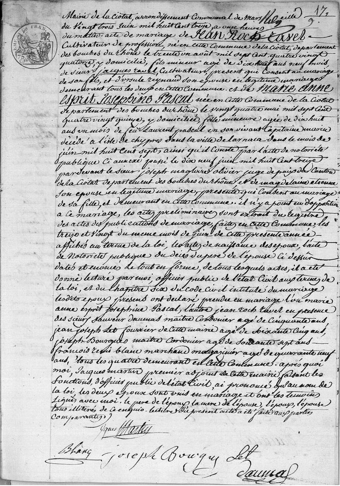 Union : RAVEL Jean Roch ( 1794 - ? )