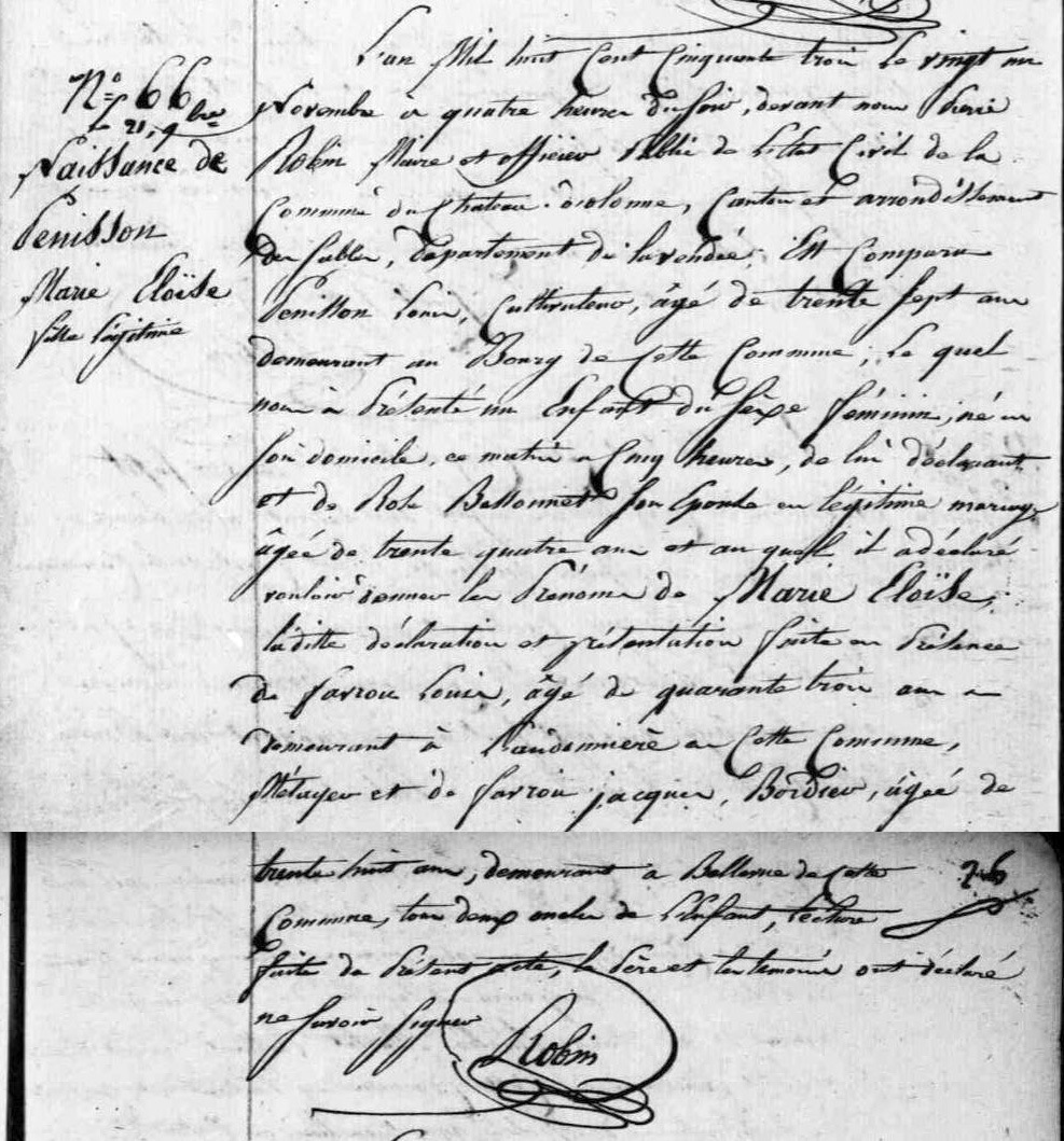 Mariage : 27 septembre 1774 à L'Île-d'Yeu 85350