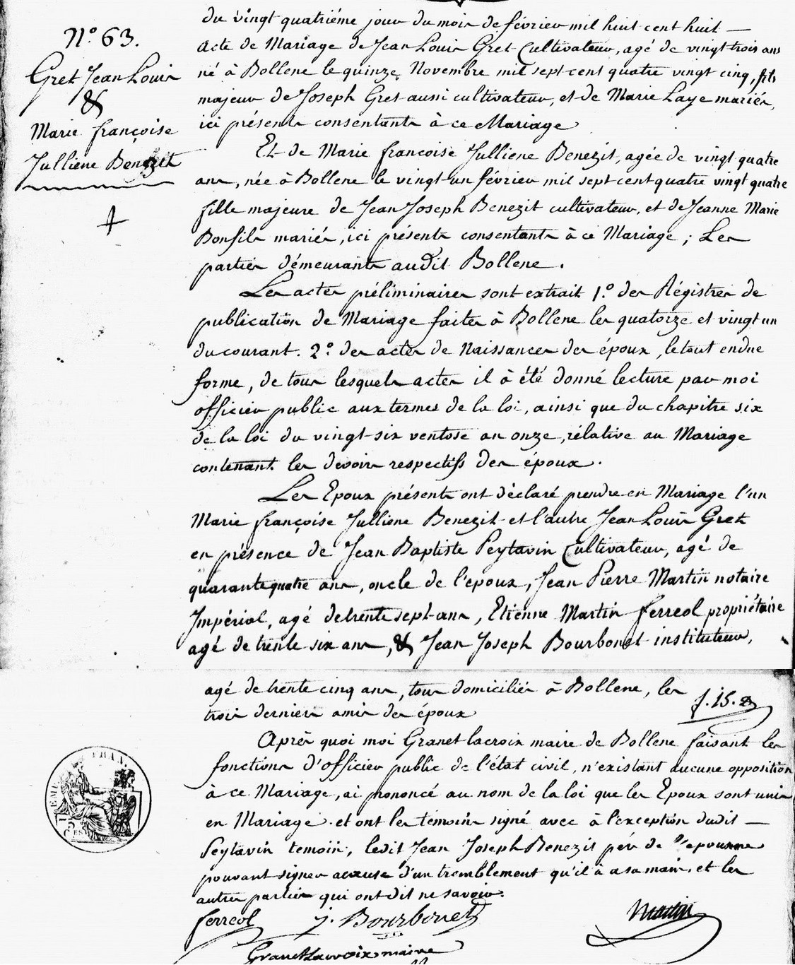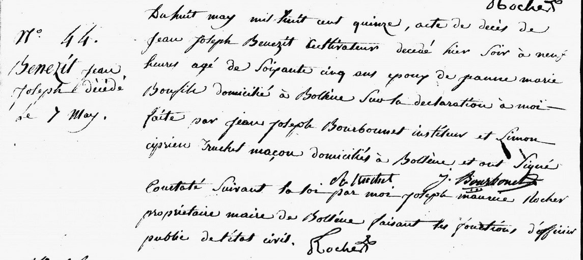 Naissance : 1750 Décès : 7 mai 1815 à Bollène 84500
