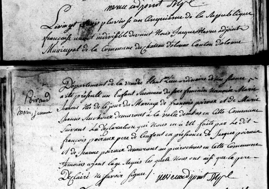 Enfant : POIROUX Marie Jeanne ( 1797 - < 1857 )