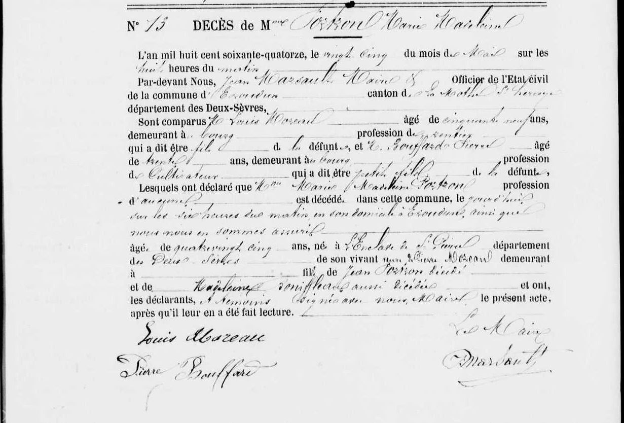 Décès : 21 novembre 1810 à Saint-Coutant 79120