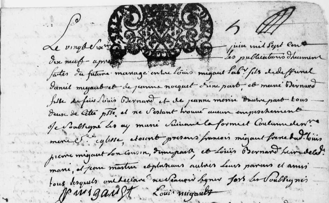 Mariage : 21 juin 1719 à Saint-Coutant 79120 métairie de la Branle