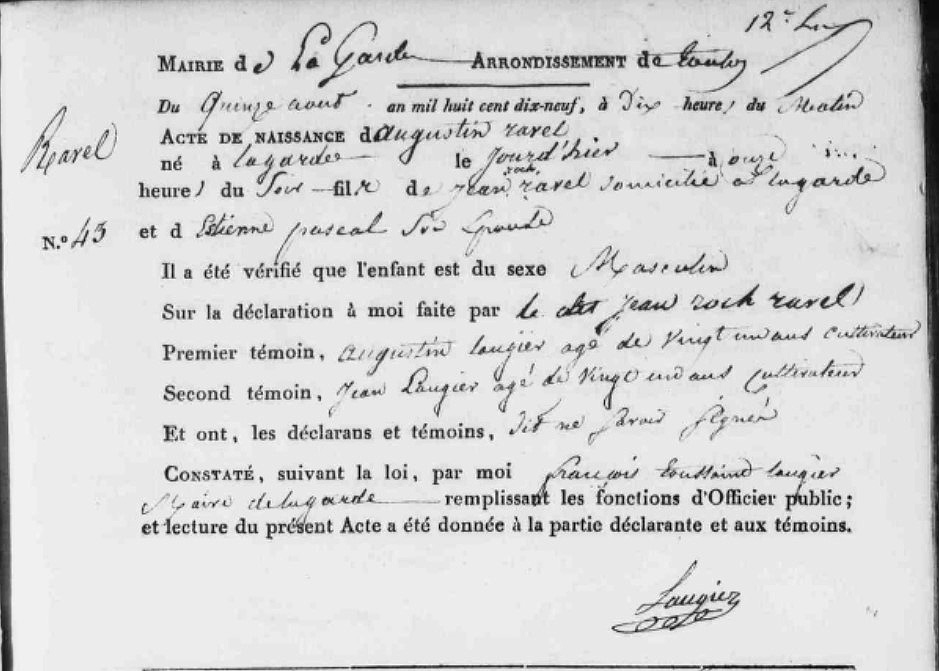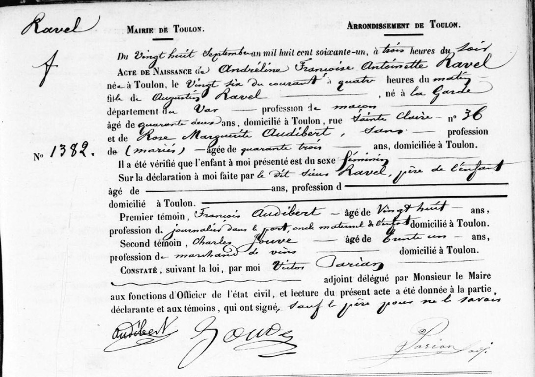 Père : RAVEL Augustin ( 1819 - ? )