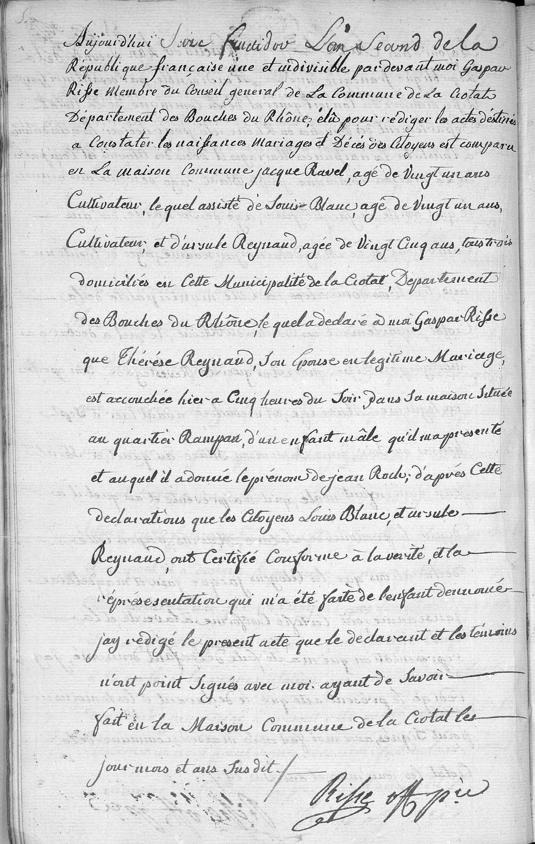 Naissance : 1er septembre 1794 à La Ciotat 13600 quartier Rampan