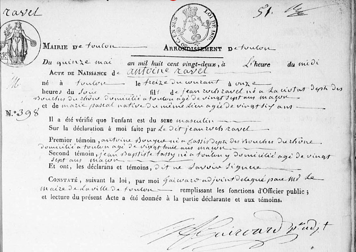 Père : RAVEL Jacques ( 1773 - ? )