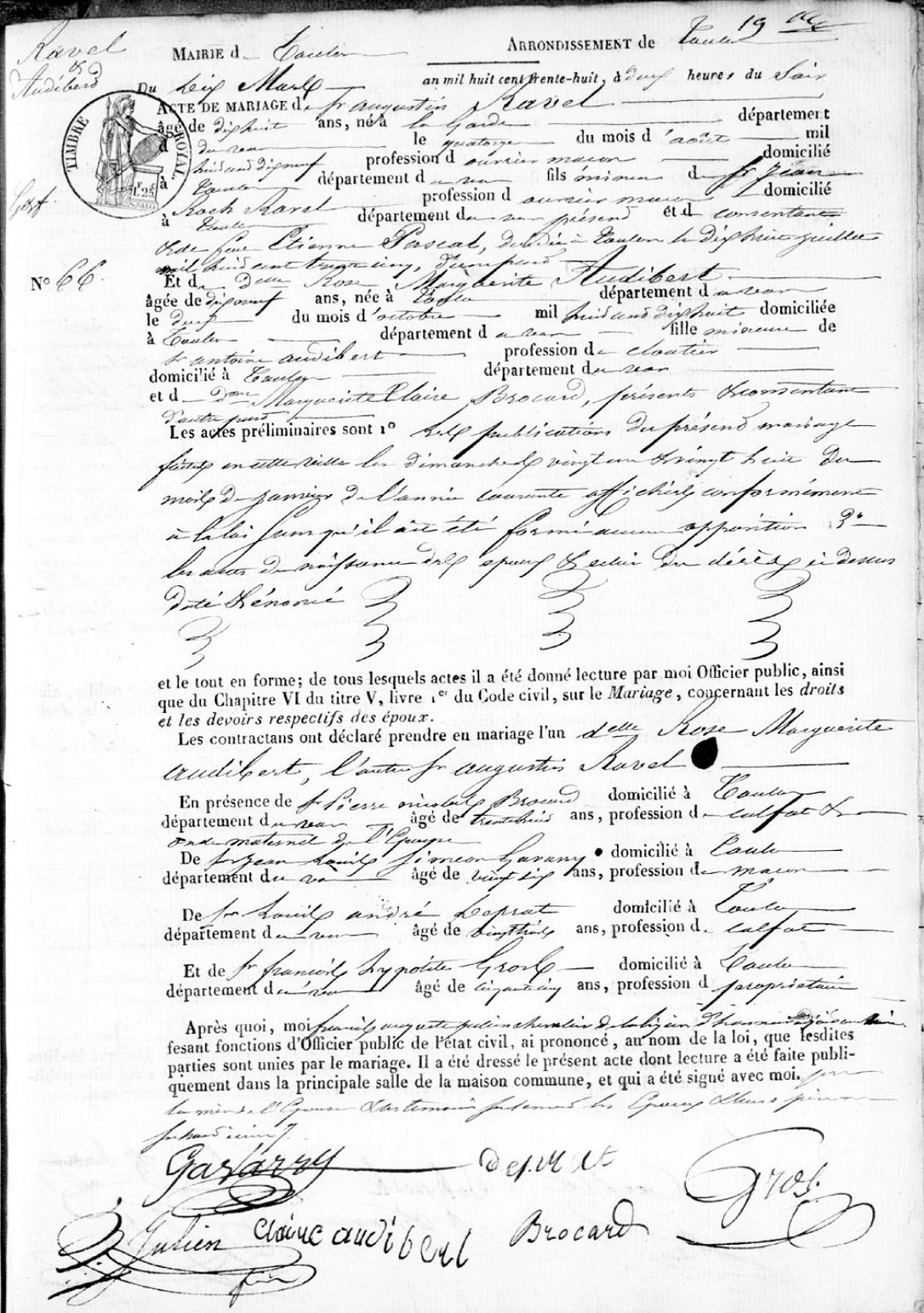 Père : RAVEL Jean Roch ( 1794 - ? )