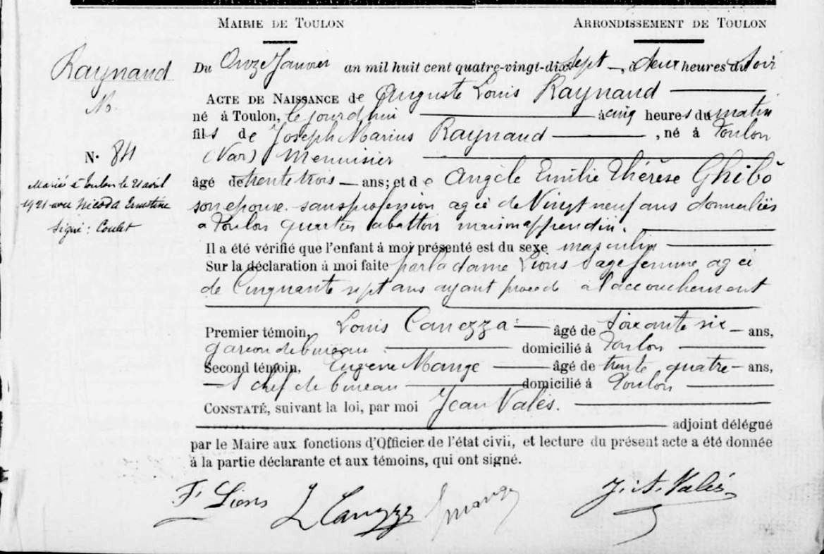 Père : RAYNAUD Joseph Marius ( 1863 - ? )