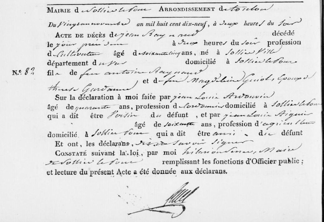 Enfant : RAYNAUD Victor Joseh ( 1806 - ? )