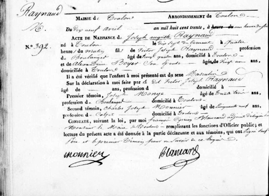 Enfant : RAYNAUD Joseph Auguste ( 1830 - ? )