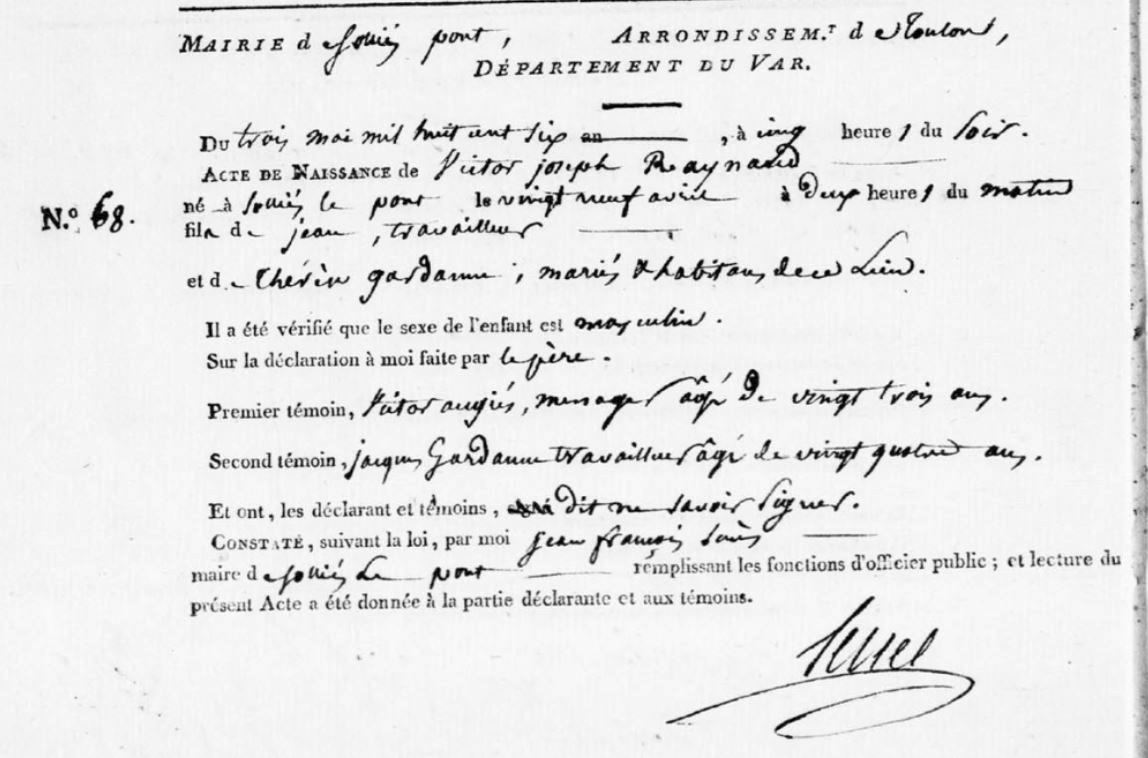 Naissance : 29 avril 1806 à Solliès-Pont 83210
