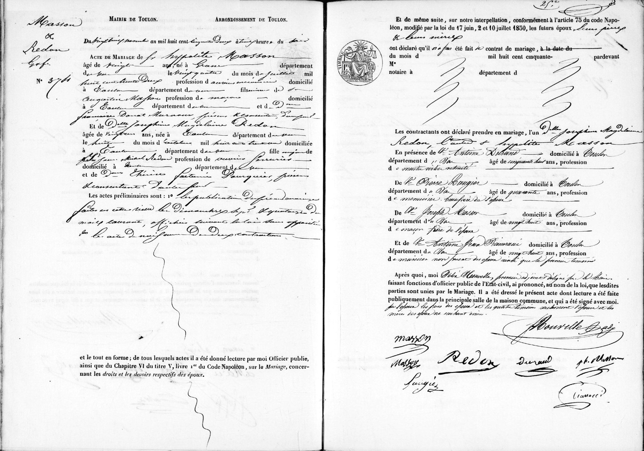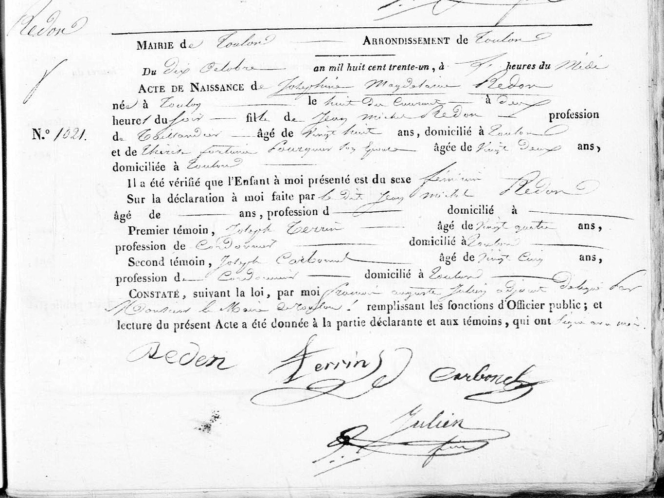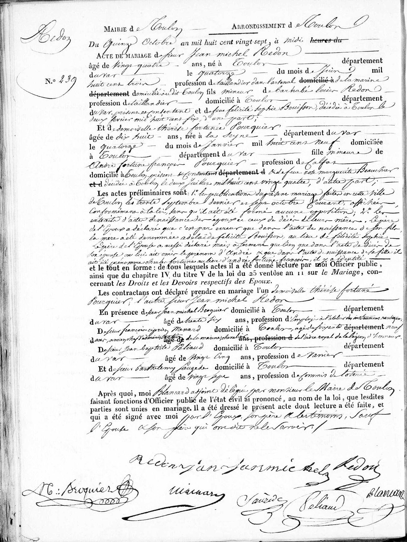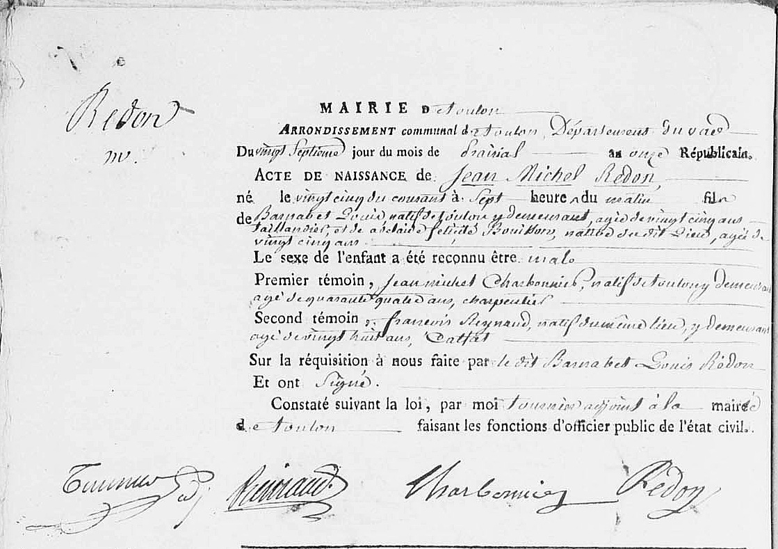 Père : REDON Barnabé Louis ( 1778 - ? )