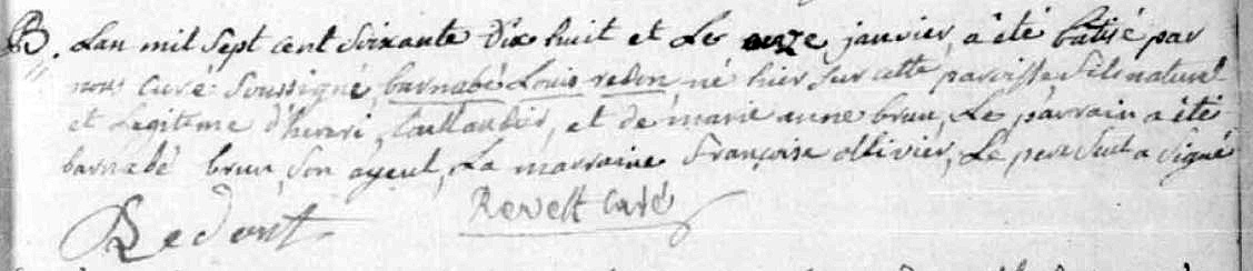Enfant : REDON Barnabé Louis ( 1778 - ? )