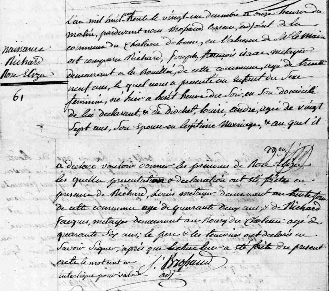 Enfant : RICHARD Rose Elisa (Eliza) ( 1830 - 1895 )