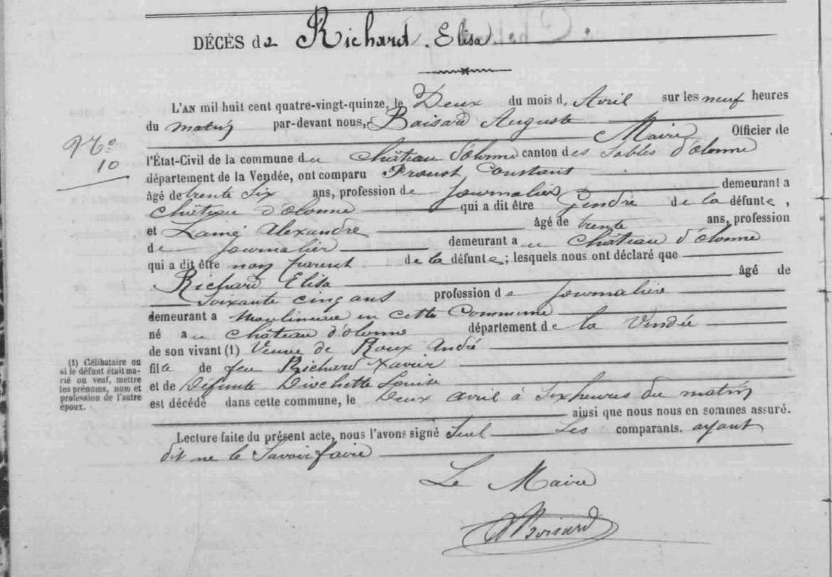 Père : RICHARD Xavier Joseph François Isaac ( 1790 - ? )
