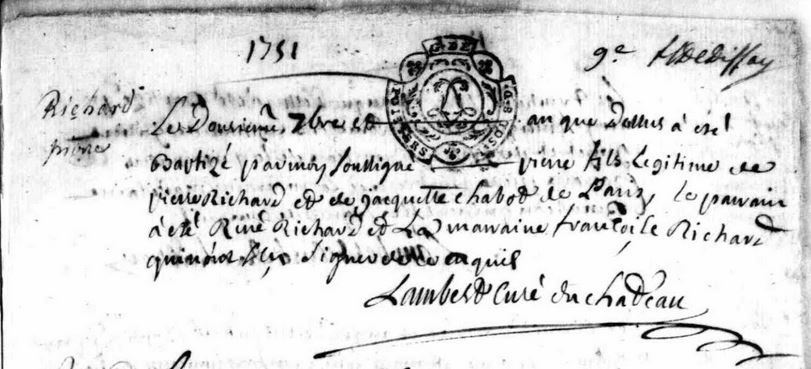Père : RICHARD Pierre ( 1706 - 1771 )