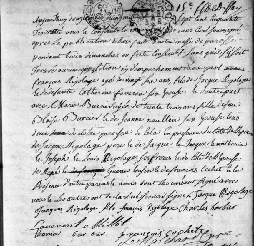 Enfants : RIGOLAGE François ( 1727 - ? )