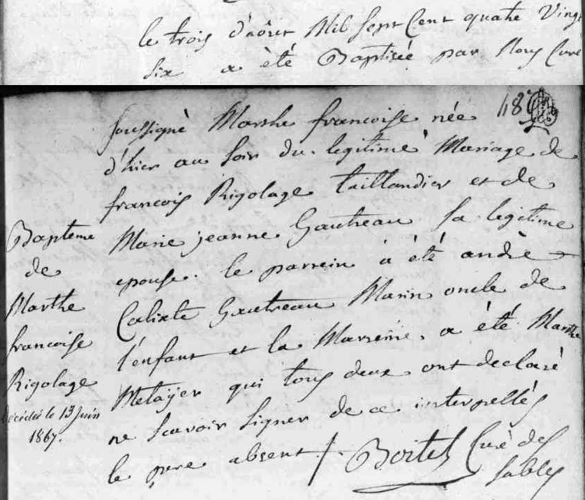 Mère : GAUTREAU Marie Jeanne ( 1754 - 1787 )